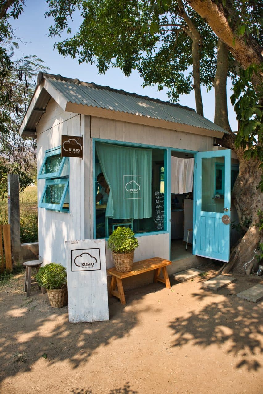 Kumo Bake is as cute as you get. It’s a little white and blue hut, which stands by the side of the country road. Inside you will find one table, where you can sip excellent coffee and try home-made cakes.