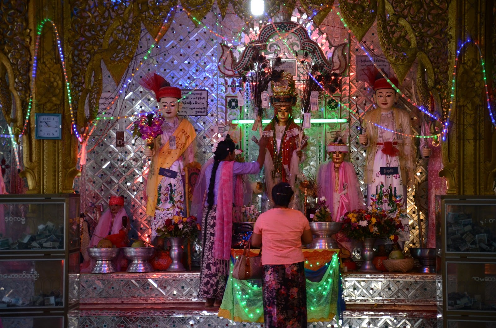 On the way to the top there are bigger and smaller altars with natural size human manikins, which are personifications of the Nats. At every one of them there is a person, who looks after it and encourages the pilgrims to come and pray to a particular spirit.
