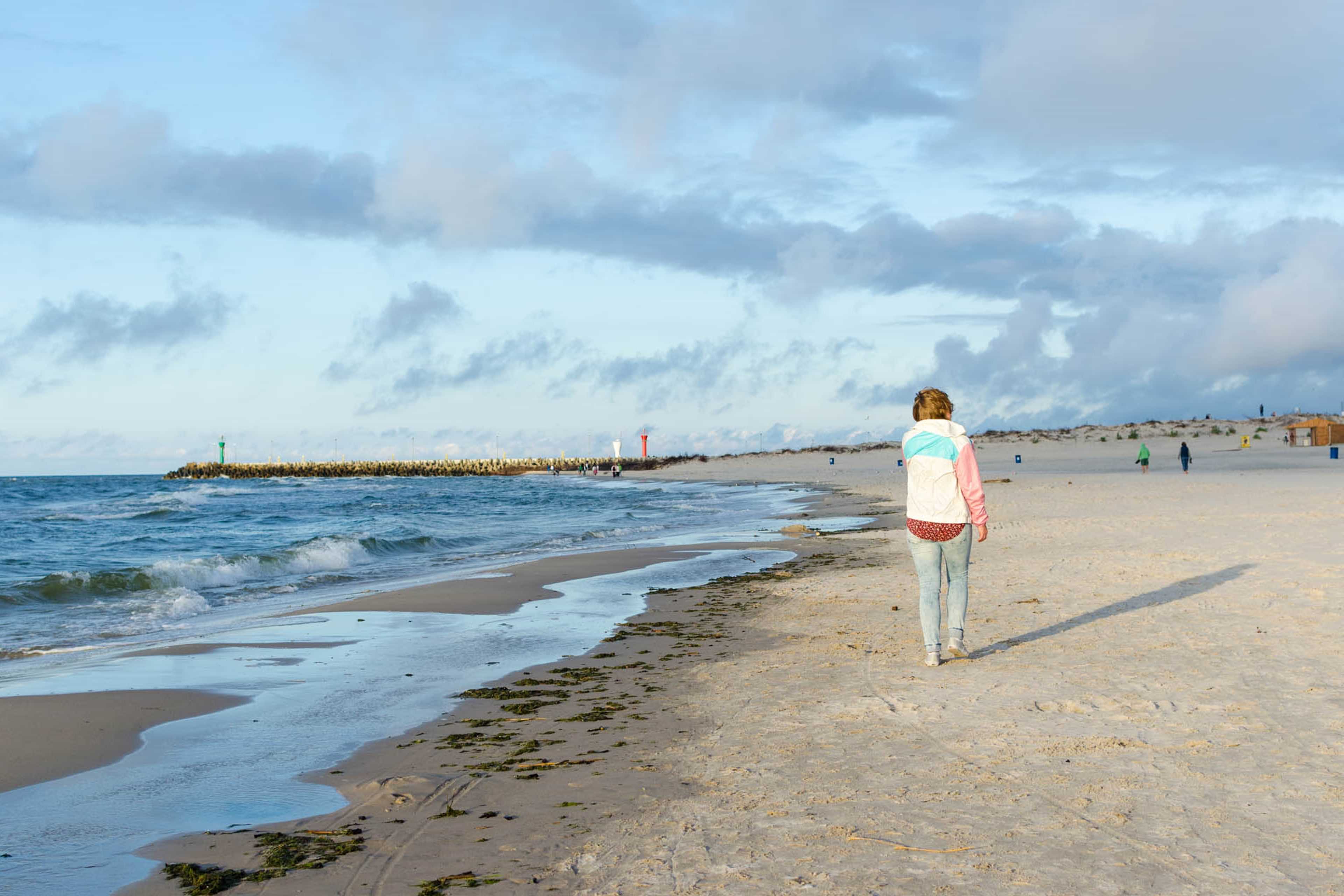 Jesienią takie spokojne spacery w Łebie są najpiękniejsze, bo pachną spadającymi liśćmi. W alejkach, prowadzących do plaży leżą ich kolorowe stosy. Można bezkarnie w nie wchodzić, rozkopać wokół siebie i słuchać ich cudownego szelestu. Las pachnie jesienią grzybami, mokrą ściółką i igliwiem. Szum morza miesza się z odgłosem bujających na wietrze sosen i świerków. Powietrze przesycone jest jodem i solą, które czuje się w powietrzu.