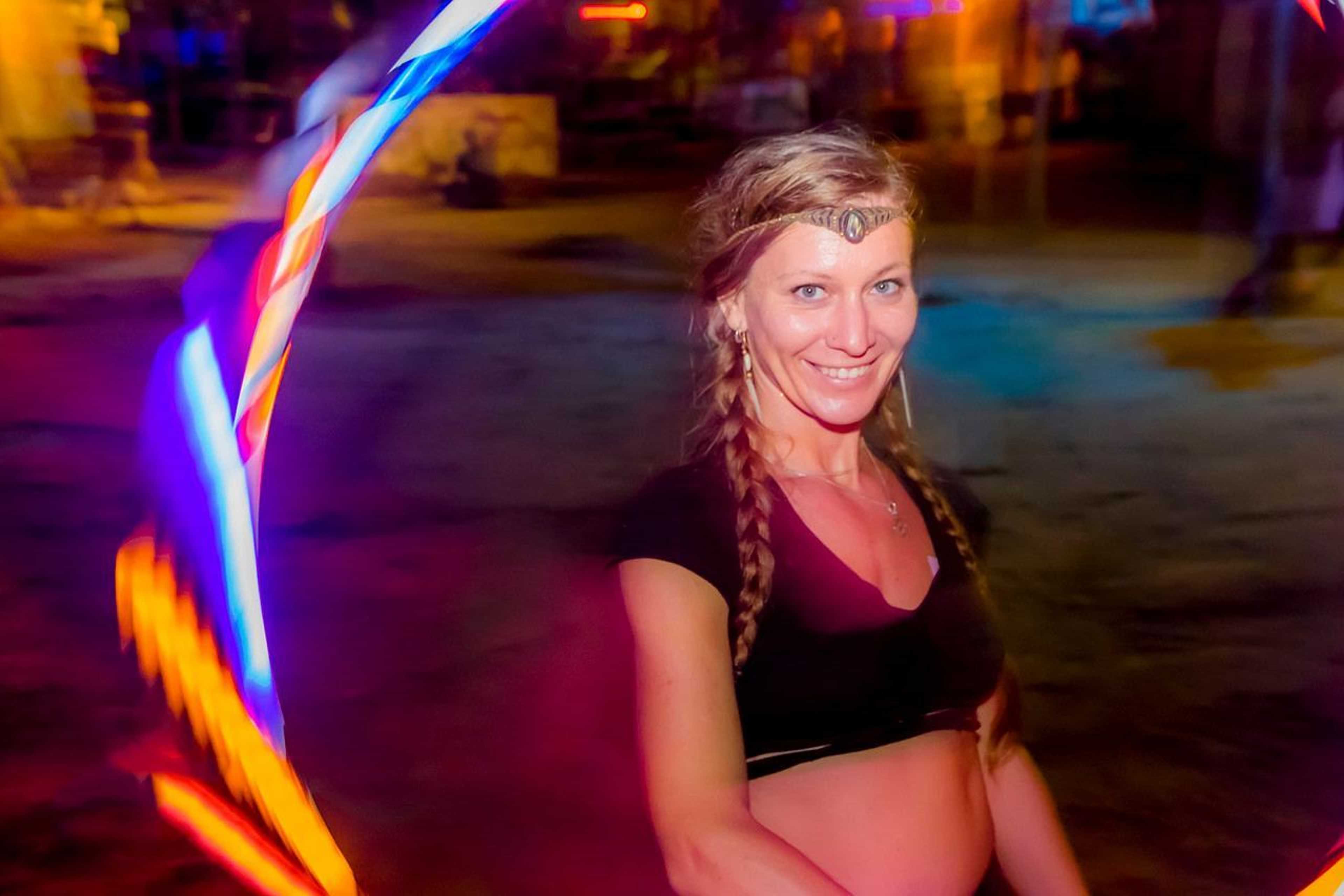 Zaczęło się od tańca brzucha i różnych wariacji tańca orientalnego, między innymi tribal fusion, belly dancing, klasyczny indyjski kathak i odissi oraz moja ulubiona kalbeliya – taniec indyjskich Cyganów. Potem do tych tańców dodałam ognia a od dwóch lat tańczę również z moim ulubionym partnerem – hula hoop.